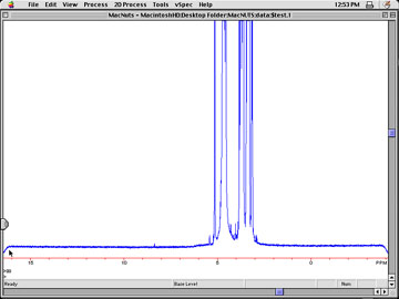 | To perform this correction in NUTS, type rd. The software will read the appropriate parameters from the data file, so accept whatever values are proposed. After the operation, you will see that the data has been shifted to the left, as happens below when you place your mouse over the image (click here for a larger version): | |||