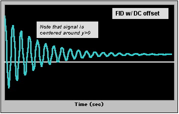 | Move mouse into and out of the figure area below to see what a DC offset of the FID looks like. To view its effects on spectra, scroll down or click here. |