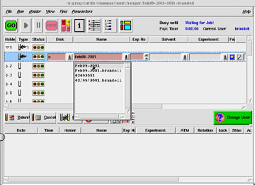| Select a location from the available "Name" list. Note that this is simply the subdirectory under which data will be saved; it is not the spectrum title or sample name. Normally, you will store your data under the day's date (larger screen here) | ||||
